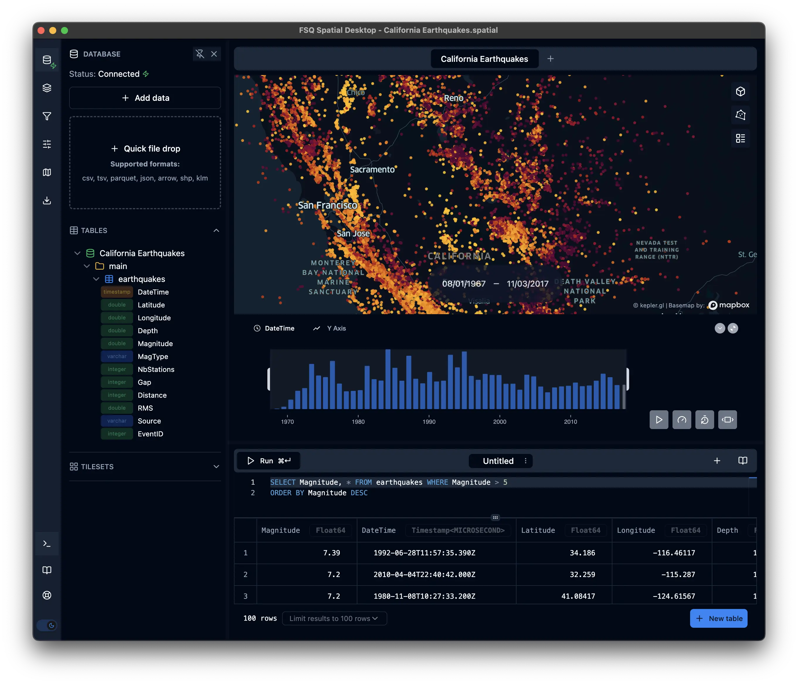 Foursquare Spatial Desktop - a powerful geospatial analysis tool and modernized version of Kepler.gl running natively on your desktop with an embedded DuckDB as the spatial processing engine.
