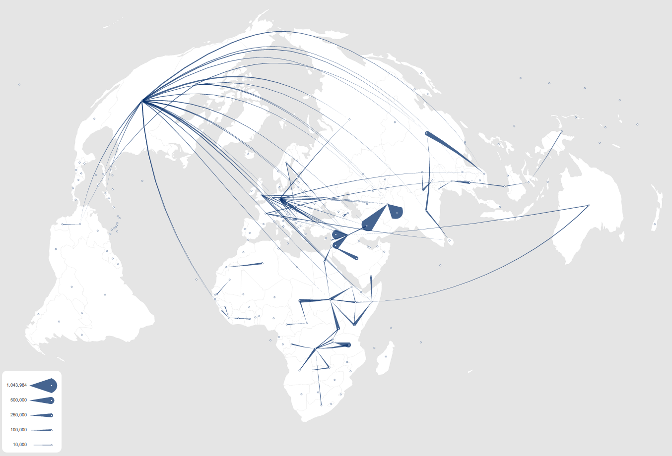 jflowmap.js2012PreviousNextTry live GitHub Flow map visualization showing refugees data by UNHCR using tapered arrows and the "flying meteor" metaphor to show the directions of the flows. jflowmap-js: flow map showing refugees data by UNHCRPreviousNext